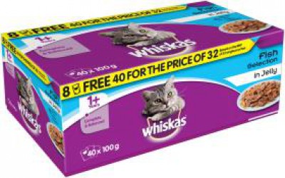 | ID: Whiskas Meat/Fish | WHISKAS 1+ Cat Pouches Fish & Meaty Selection in Jelly 12x100g pk (MPP £3.75) |